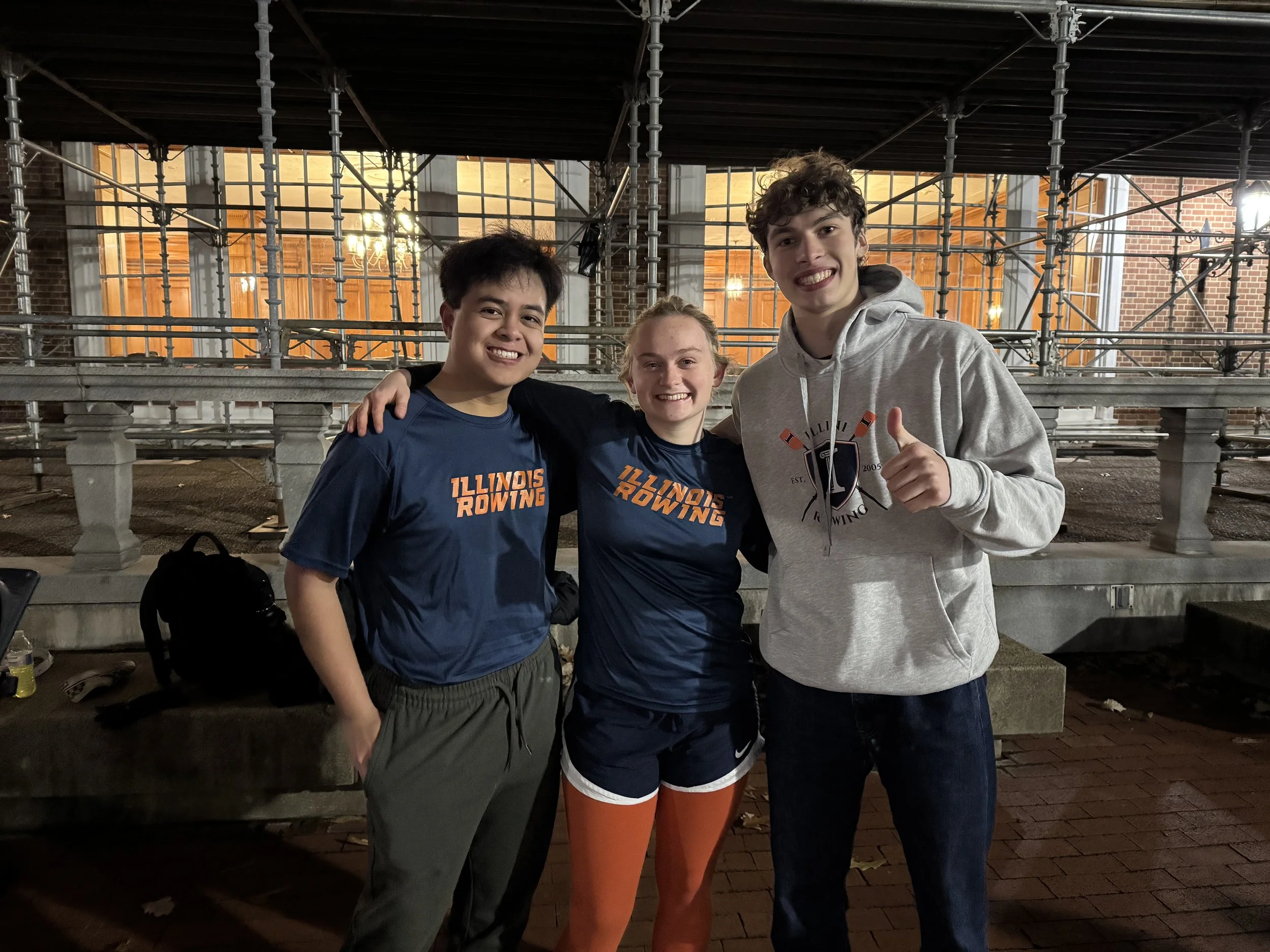 Over the course of December 9th and 10th, our team spent 24 hours on the erg, making our way to ACRA in Oakridge, TN. Our annual Ergathon fundraiser went off with a bang at 10 AM sharp. Midway through, we already were 54% of the way there! Seeing those numbers, Illini Rowing didn’t slow down, we barreled down. Through the freezing temperatures, wind, snow, and nightfall, we braved the elements to see our goal through. Truly coming together in the last twelve hours, our team worked furiously to not only reach our distance goal, but surpass it by 36,743 meters.